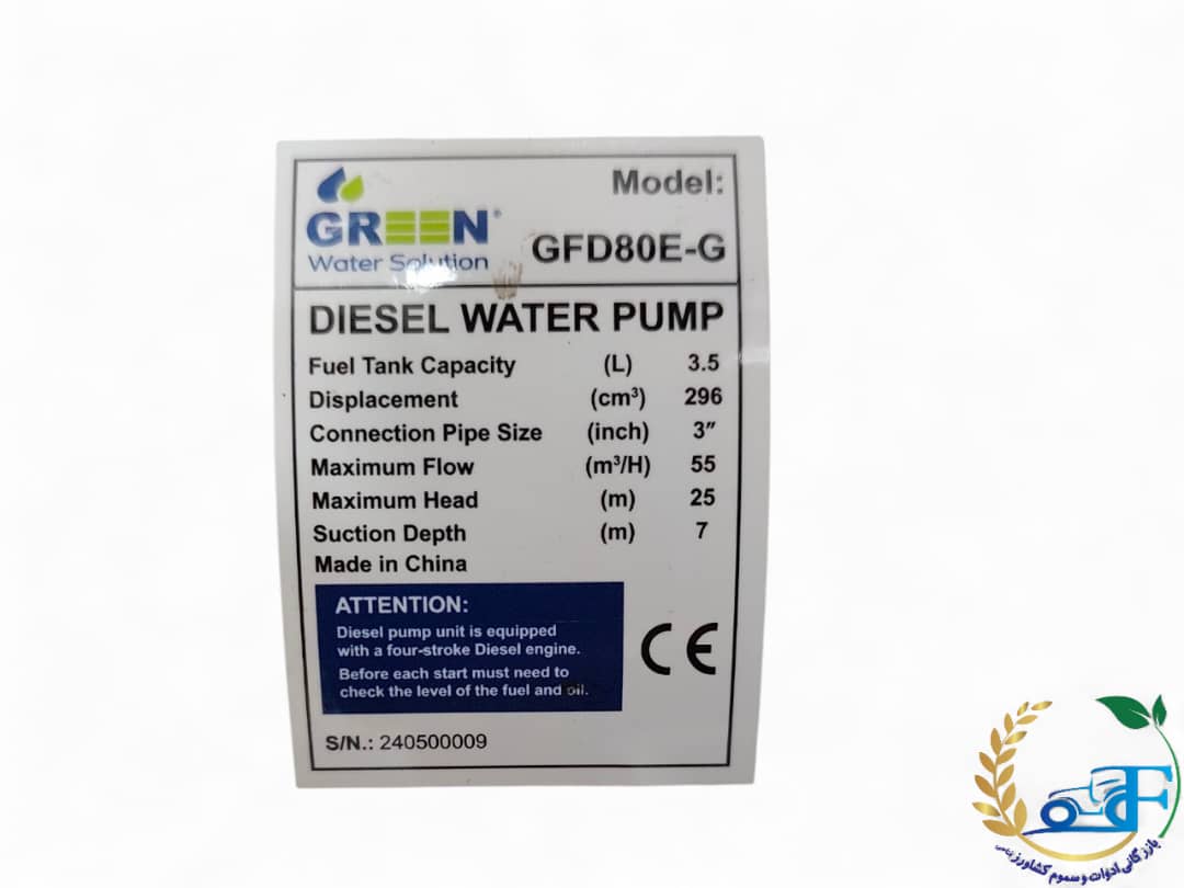 موتور پمپ دیزلی ۴ اینچ استارتی گرین بهترین انتخاب است.
